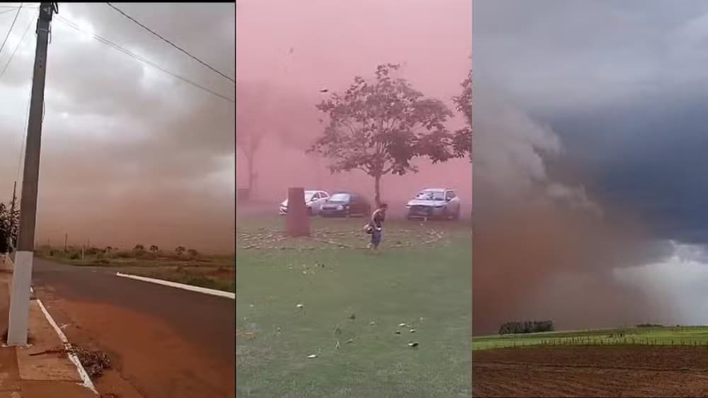 Pelo menos dois municípios de Mato Grosso do Sul foram atingidos por uma ventania carregada de poeira no início da tarde desta quinta-feira (21). Imagens feitas por moradores mostram a tempestade de areia encobrindo Dourados, Ponta Porã e Iguatemi, localizadas no sul do estado.